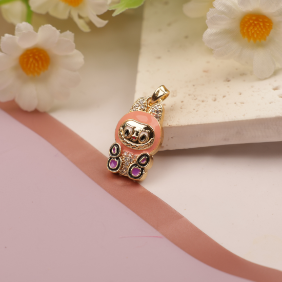 Whimsical and cute, the Pink Bunny Pendant adds an instant dash of fun to any outfit. It features a polished gold-tone copper base, pink enamel hood, and twinkling CZ stones that reflect light beautifully. Its intricate design and soft hues make it a charming everyday accessory for the young at heart.
